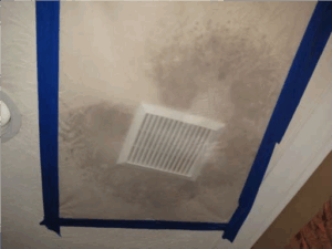 Figure 2. Staining and suspected fungal growth on a bathroom ceiling.